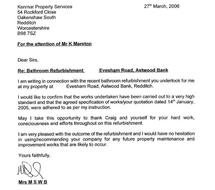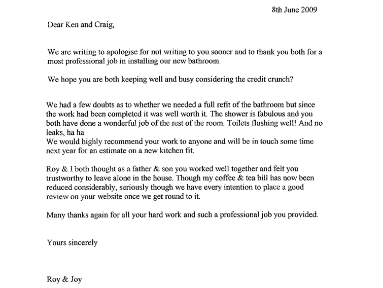 “We are very pleased with the work you have carried out in our bathroom and cloakroom. We would be more than happy to recommend